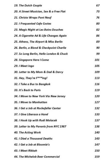 Audiobook Here are the first 20 audio chapters of the 100 chapters in this memoir. The total listening time of the audiobook is 9 hours. If you like what you hear, you can buy the audiobook at Google Play Books. https://bradsmemoir.com/wp-content/uploads/2026/01/A-Heads-Up-from-Brad-Audio.mp3 A Heads Up from Brad https://bradsmemoir.com/wp-content/uploads/2026/01/Chapter-1-edit.mp3 Chapter 1: Down & Out in Chicago https://bradsmemoir.com/wp-content/uploads/2026/01/Chapter-2-edit.mp3 Chapter 2: I Land a Job with Dean Witter https://bradsmemoir.com/wp-content/uploads/2026/01/Chapter-3-edit.mp3 Chapter 3: I Get Fired During Training https://bradsmemoir.com/wp-content/uploads/2026/01/Chapter-4-edit.mp3 Chapter 4: Dean Witter Rehires Me https://bradsmemoir.com/wp-content/uploads/2026/01/Chapter-5-edit-2.mp3 Chapter 5: I Roller Skated to Work https://bradsmemoir.com/wp-content/uploads/2026/01/07-Chapter-6-edit-3.mp3 Chapter 6: Dean Fires Me Yet Again https://bradsmemoir.com/wp-content/uploads/2026/01/08-Chapter-7-edit_.mp3 Chapter 7: Off to Paine & More of the Same https://bradsmemoir.com/wp-content/uploads/2026/01/09-Chapter-8-Edit.mp3 Chapter 8: The Lolita Story https://bradsmemoir.com/wp-content/uploads/2026/01/10-Chapter-9_edit-3.mp3 Chapter 9: Over to A.G. Becker & Out https://bradsmemoir.com/wp-content/uploads/2026/01/11-Chapter-10-edit.mp3 Chapter 10: I Was a Lousy Stockbroker https://bradsmemoir.com/wp-content/uploads/2026/01/12-Chapter-11.mp3 Chapter 11: I Start Modeling in Chicago https://bradsmemoir.com/wp-content/uploads/2026/01/13-Chapter-12.mp3 Chapter 12: The Significance of Moving Downtown https://bradsmemoir.com/wp-content/uploads/2026/01/14-Chapter-13.mp3 Chapter 13: A Magical Trip to the Travel Agent https://bradsmemoir.com/wp-content/uploads/2026/01/15-Chapter-14.mp3 Chapter 14: Off to Innsbruck & Beyond https://bradsmemoir.com/wp-content/uploads/2026/01/16-Chapter-15.mp3 Chapter 15: I Land in Nice https://bradsmemoir.com/wp-content/uploads/2026/01/17-Chapter-16.mp3 Chapter 16: A Coastal Cliffhanger to Milan https://bradsmemoir.com/wp-content/uploads/2026/01/18-Chapter-17.mp3 Chapter 17: Ciao Milano, Bonjour Paris https://bradsmemoir.com/wp-content/uploads/2026/01/19-Chapter-18.mp3 Chapter 18: I Make Paris My Home https://bradsmemoir.com/wp-content/uploads/2026/01/20-Chapter-19.mp3 Chapter 19: The Dutch Couple https://bradsmemoir.com/wp-content/uploads/2026/01/21-Chapter-20.mp3 Chapter 20: A Street Musician, Sex & a Free Flat Click here to buy the Audiobook on Google Play Books Click here to buy the Ebook on Google Play Books Visitors 47 Share if you like it!
